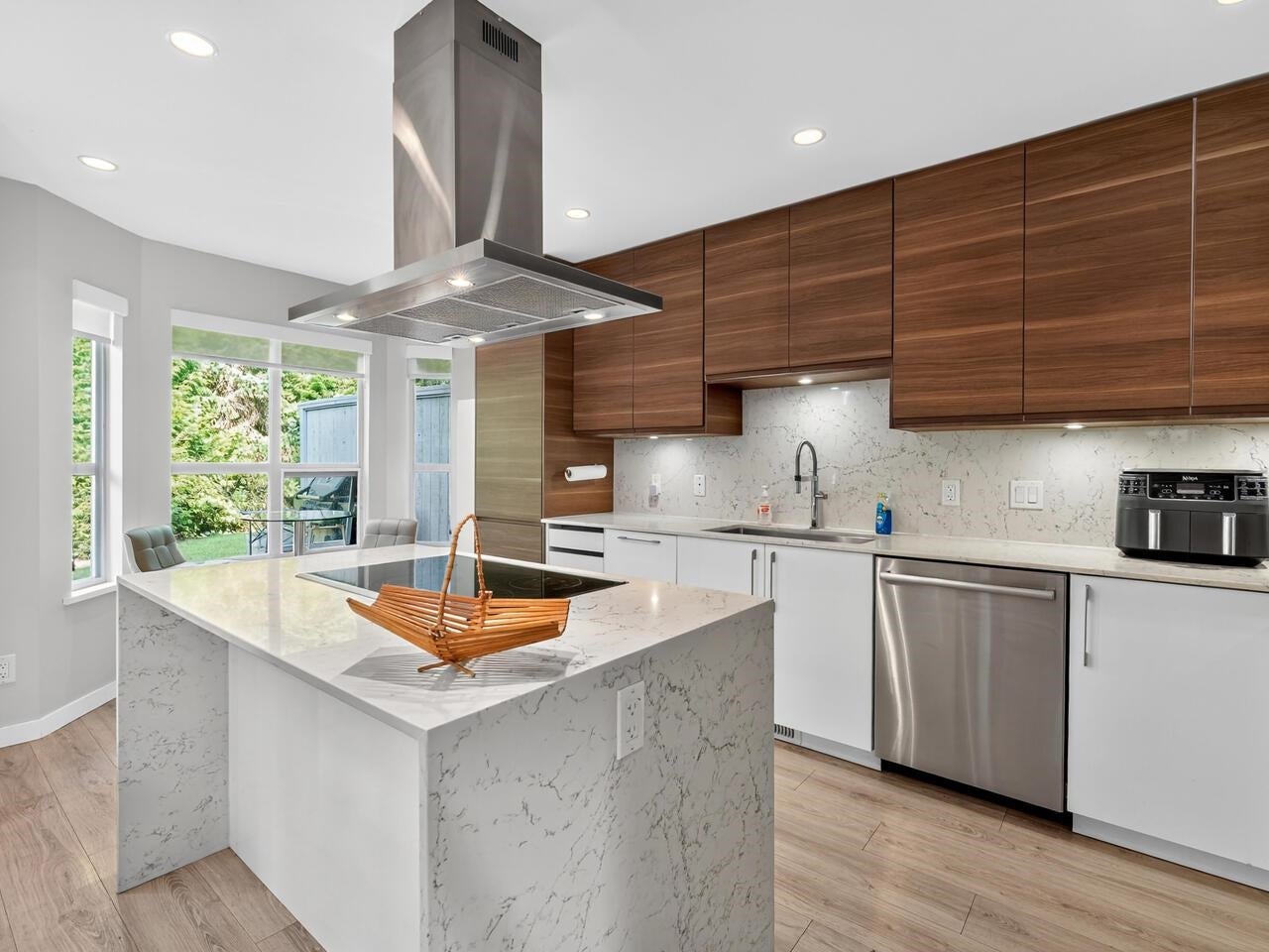 Welcome to Raven Woods at Roche Point. This stunning 2-bed & den 3-bath corner unit townhome is in the heart of it all. Steps away from Mount Seymour, Parkgate shopping centre, 2 golf courses and top rated elementary and secondary school, this is the location you've been dreaming of. While currently a 2-bed+den, it can easily be converted into a 3-bed if needed. The 19' ceiling in the living area lets in the afternoon sun, brightening the entire unit while backing onto the private patio and greenbelt for those summer evenings. Completely renovated in 2020 with new floors, kitchen, bathrooms, on demand hot water and radiant floor heating. 1 car garage with storage room for bikes, skis and whatever else you need plus a separate parking spot out front.
